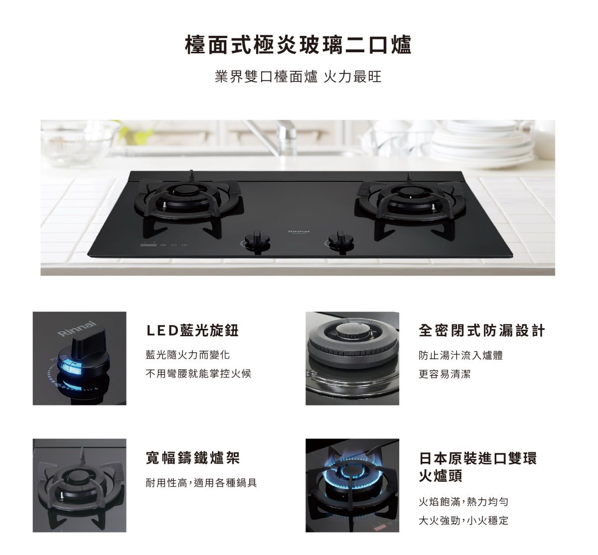 Rinnai林內-檯面式極炎玻璃二口爐RB-M2710G(B)
