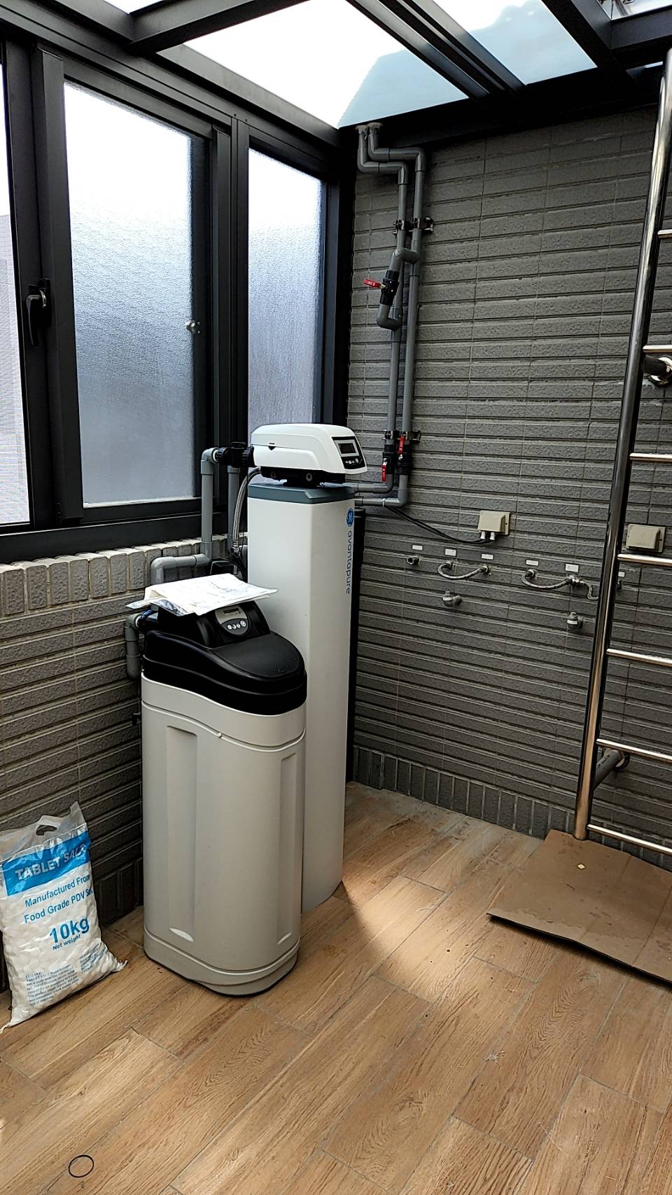 設備尺寸 : W340 x D450 x H1100mm 產品規格 : 30公升 進水壓力 : 2kg/cm² 進出管徑 : 1” 排水管徑 : ½” 出水量 : 2,500公升/時 電壓 : 110V/60Hz 適用人數:3~5人 設備功能 : 軟化水質,防止結垢(去除鈣鎂,石灰質)