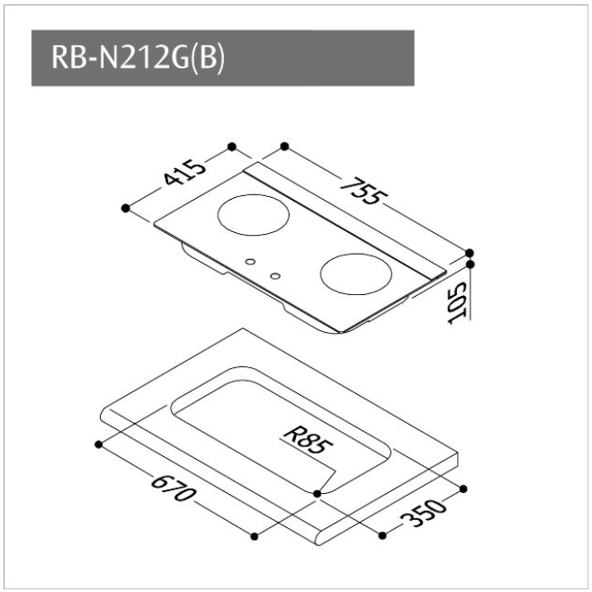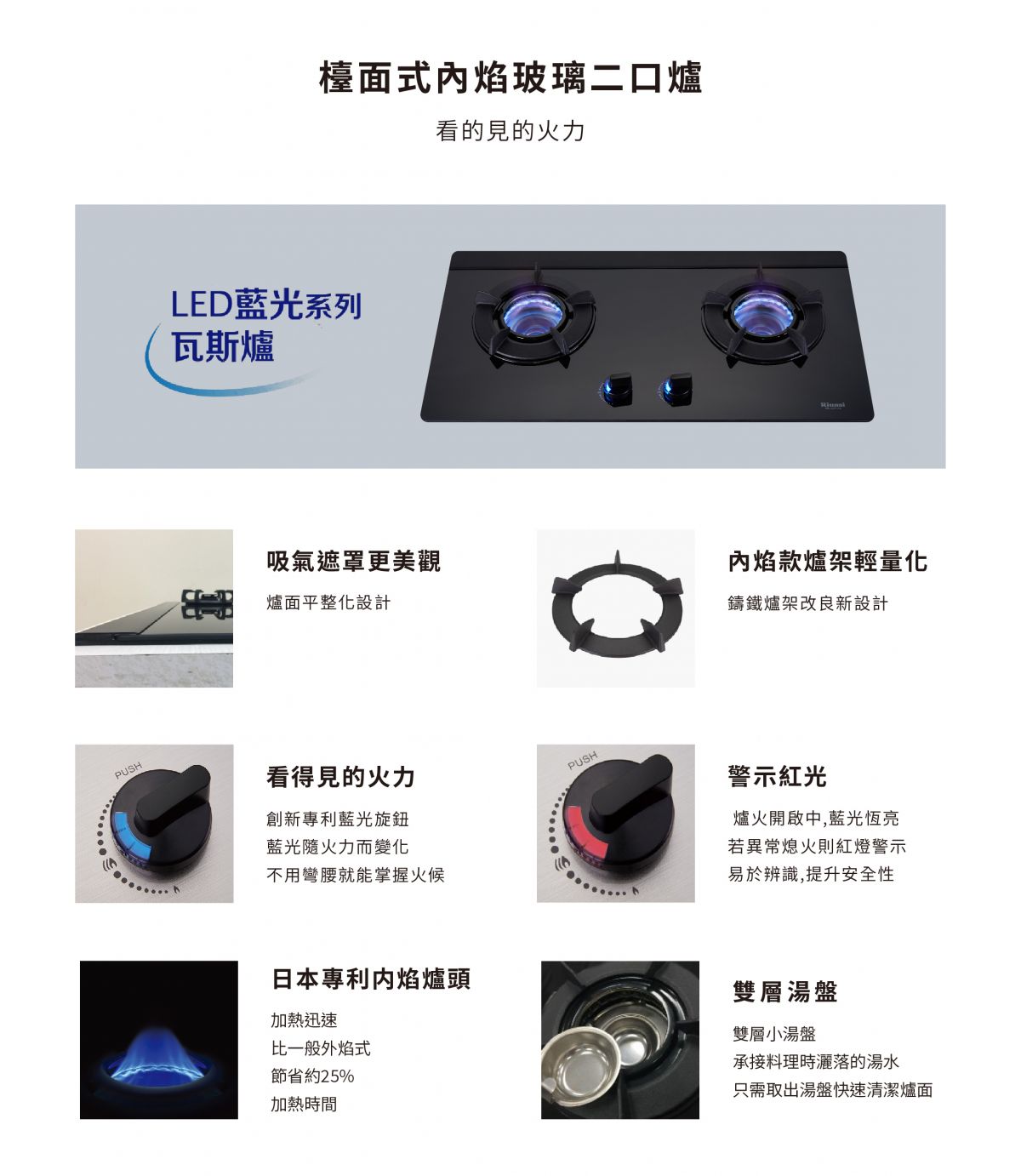 Rinnai林內-檯面式內焰玻璃雙口爐 RB-N212G(B)