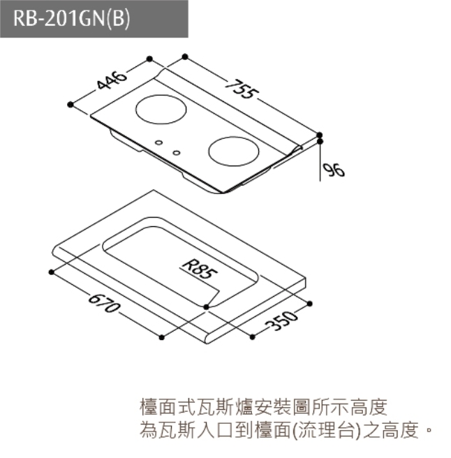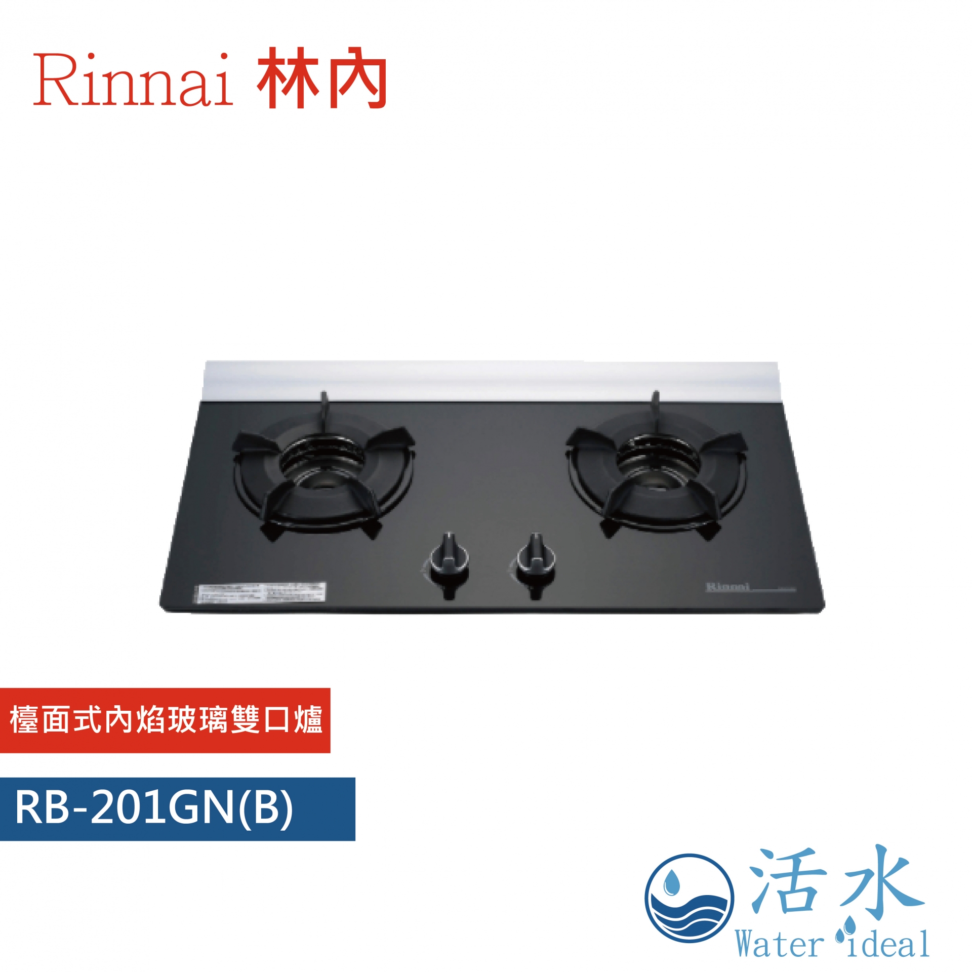 Rinnai林內-檯面式內焰玻璃雙口爐 RB-201GN(B)