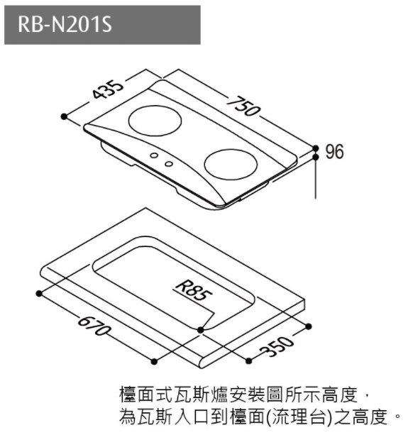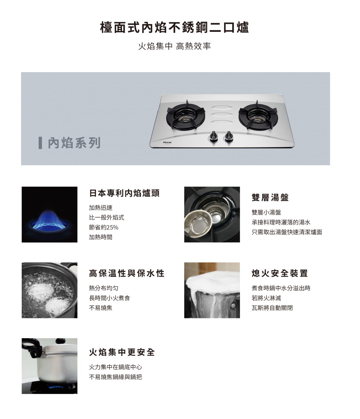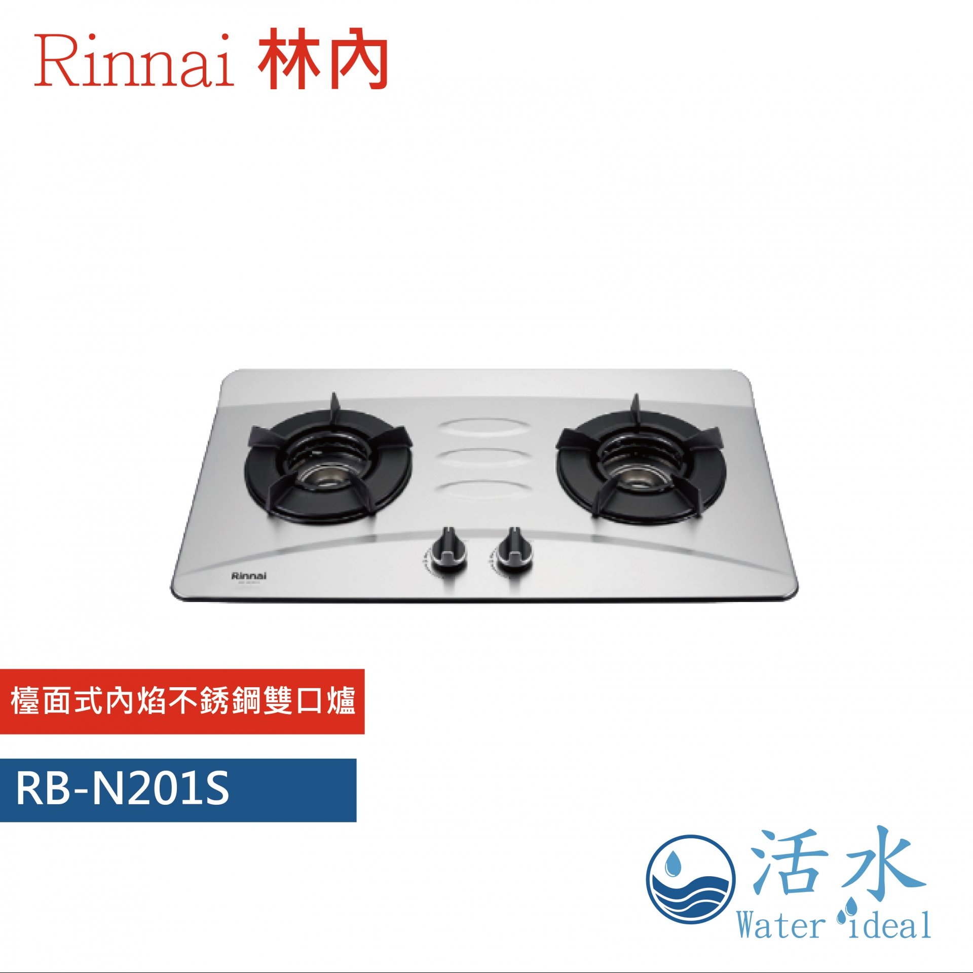Rinnai林內-檯面式內焰不銹鋼雙口爐 RB-N201S