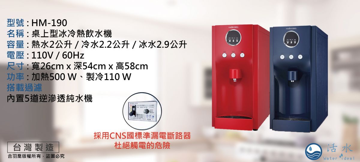 | 容量:熱水2公升 冷水2.2公升 冰水2.9公升 電壓:110V 功率:500W加熱/110W製冷 |