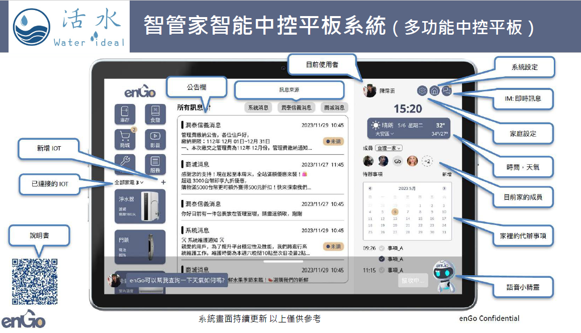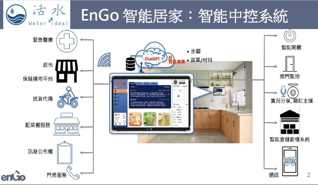 「智能中控」:照明控制、空調控制、智慧開關、智能衣櫥、智慧倉儲、用水控制、購物、音樂、新聞…等,訂閱日常所需以及平台所有功能只需一個頁面,全家人輕鬆上手。