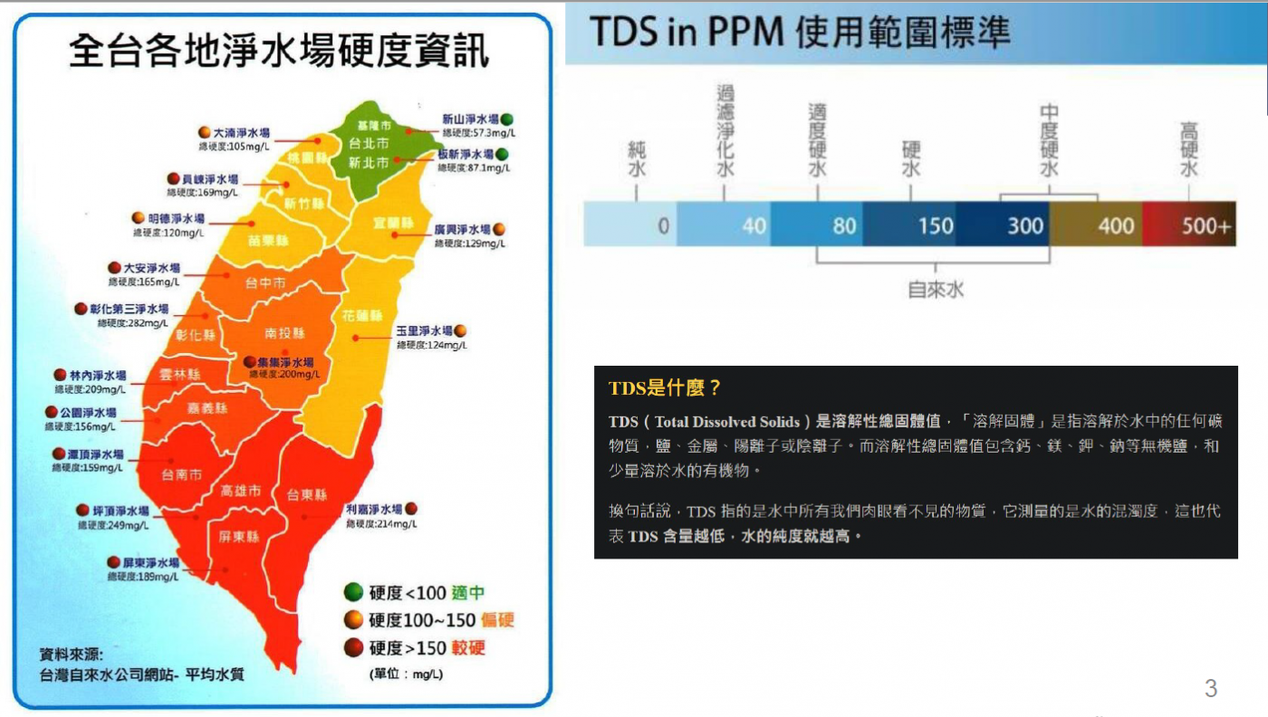 智能水維氧: 內建TDS,透過AI監控水質,提供即時機器資訊(例如飲水量關注、水質、⽤水量、濾芯壽命),故障排除及⾃動通報機體服務需求。