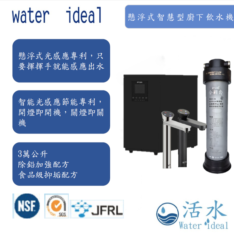 懸浮式智慧型廚下飲水機搭Pro-01 NIPPON專業級 五道銀添Ag+直飲椰殼碳纖維淨水器