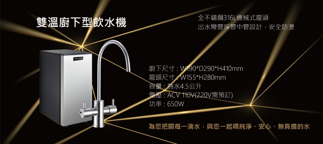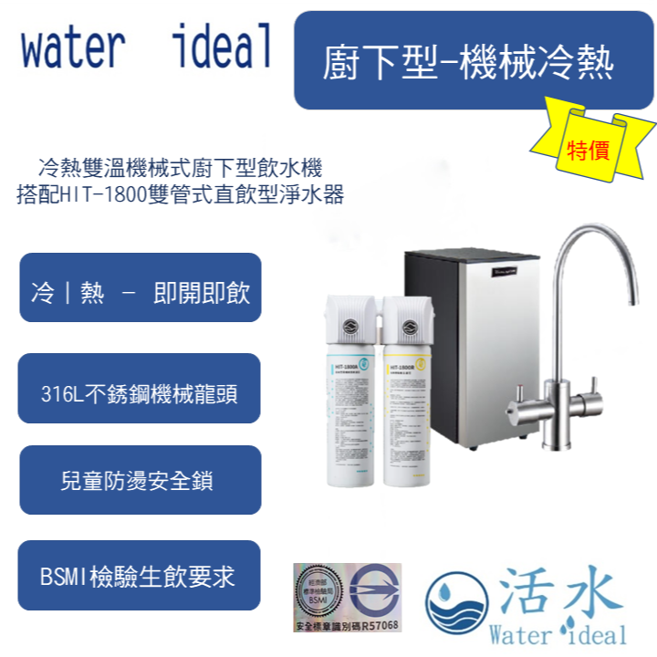 機械式雙溫廚下飲水機搭配HIT-1800雙管式直飲型淨水器