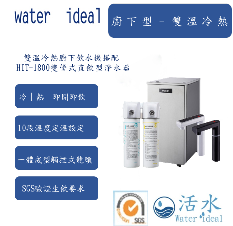 愛惠浦HS288T-plus 雙溫廚下型飲水機 搭配HIT-1800雙管式直飲型淨水器