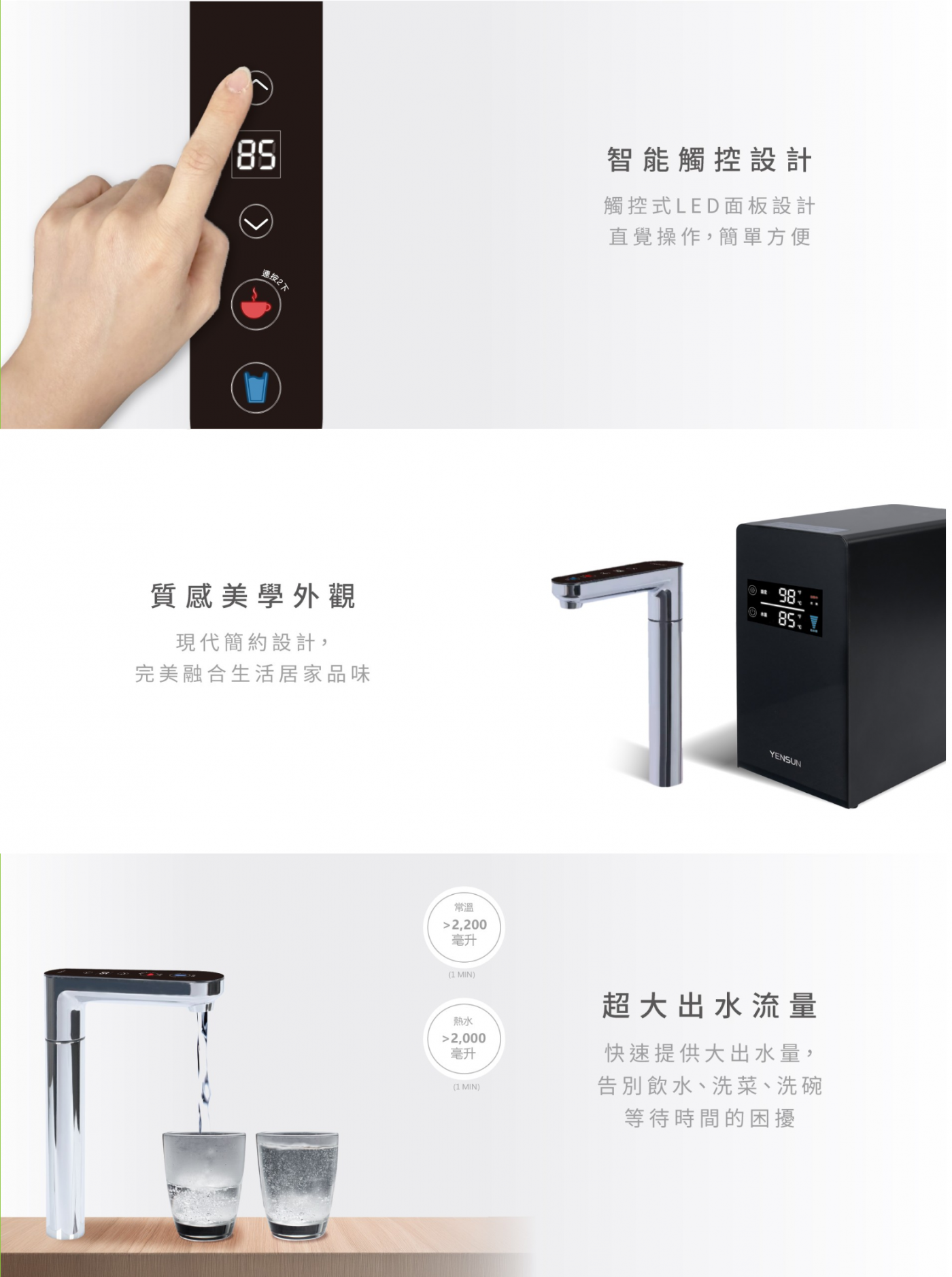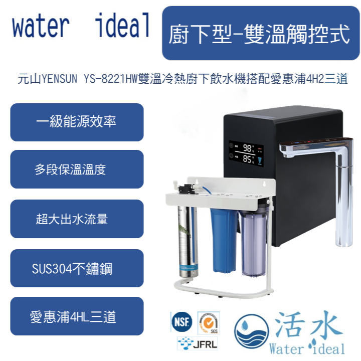 元山YENSUN YS-8221HW雙溫冷熱廚下飲水機搭配4HL三道
