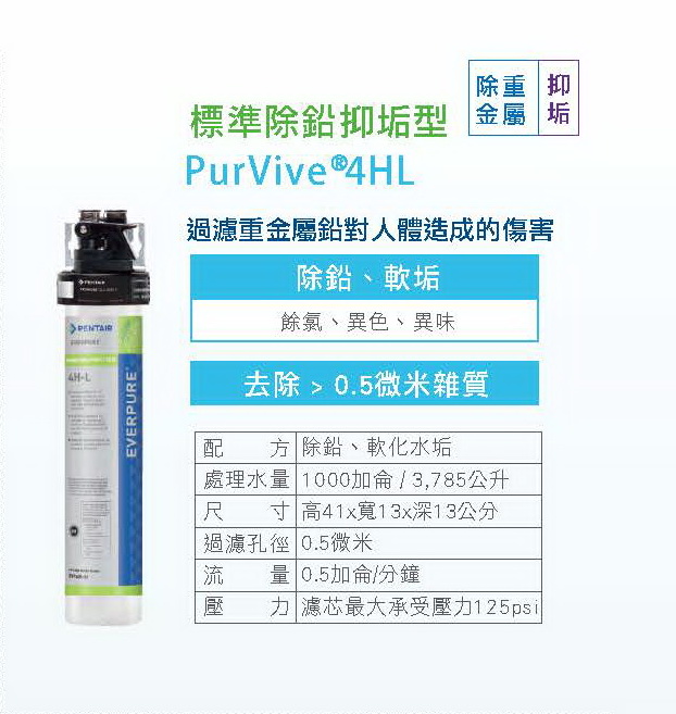 第三道:4HL除鉛軟水濾芯(使用週期約12個月,視當地水質狀況不同)