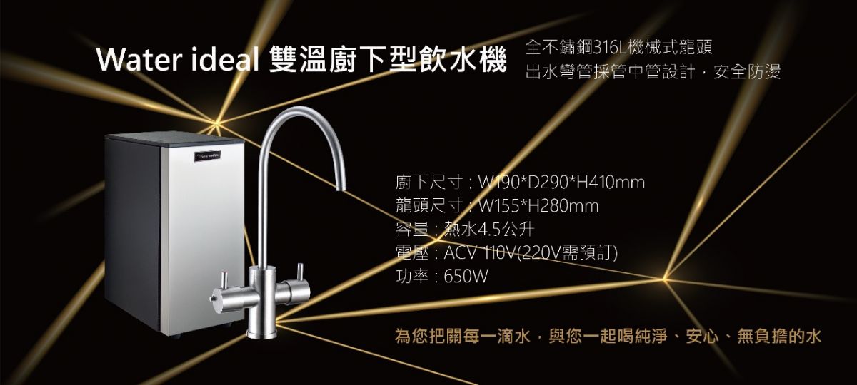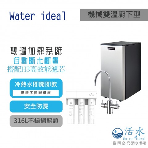 Water ideal機械式雙溫廚下型飲水機搭H3超濾膜濾心