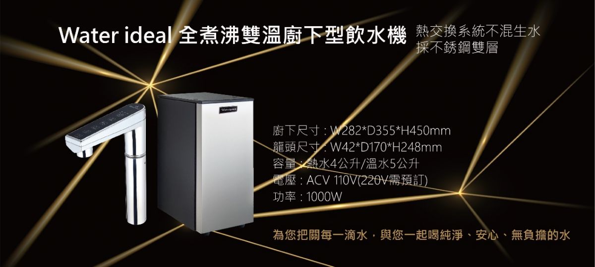 | •原水水壓若超過(3kg/cm)需加裝減壓閥減壓至(3kg/cm)以下<安裝減壓裝置費用需另計> •原水水壓只少須有(1.5kg/cm)的壓力,若水壓太低,需自費裝加壓馬達提高水壓<安裝加壓馬達費用需另計> Water ideal活水實體店面經營,讓你購物有保障~買得放心、喝得安心。 ◆保固:保證書原廠保固1年 ◆規格配件以原廠公佈及實機為準 ◆圖片顏色以實機為準 Water ideal活水實體店面經營,讓你購物有保障~買得放心、喝得安心。