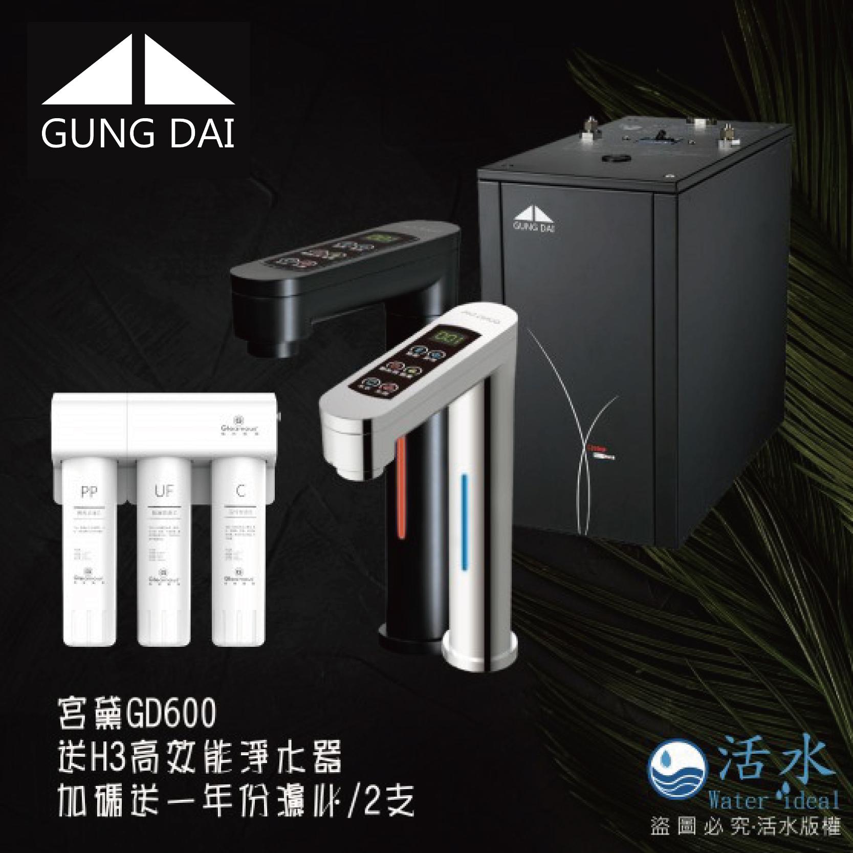 宮黛 GD-600 雙溫廚下型飲水機(銀、黑)搭H3超濾膜濾心