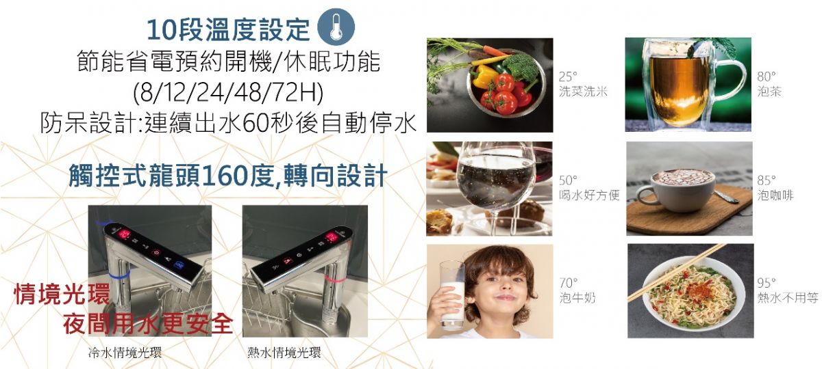 | SUS316醫療級不銹鋼電熱棒加熱法 SUS316醫療級不銹鋼熱缸缸體 觸控式龍頭設定換芯提醒 日本三菱H5高硬度耐磨觸控面板 |