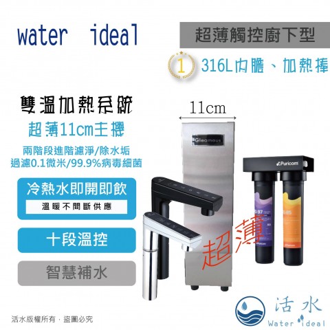 Water ideal超薄雙溫廚下型飲水機(銀、黑)搭line 2專業級濾淨系統