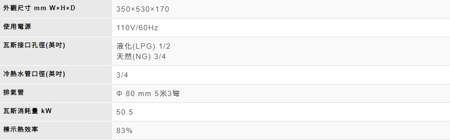 天然氣需使用5立方米/小時 以上瓦斯流量