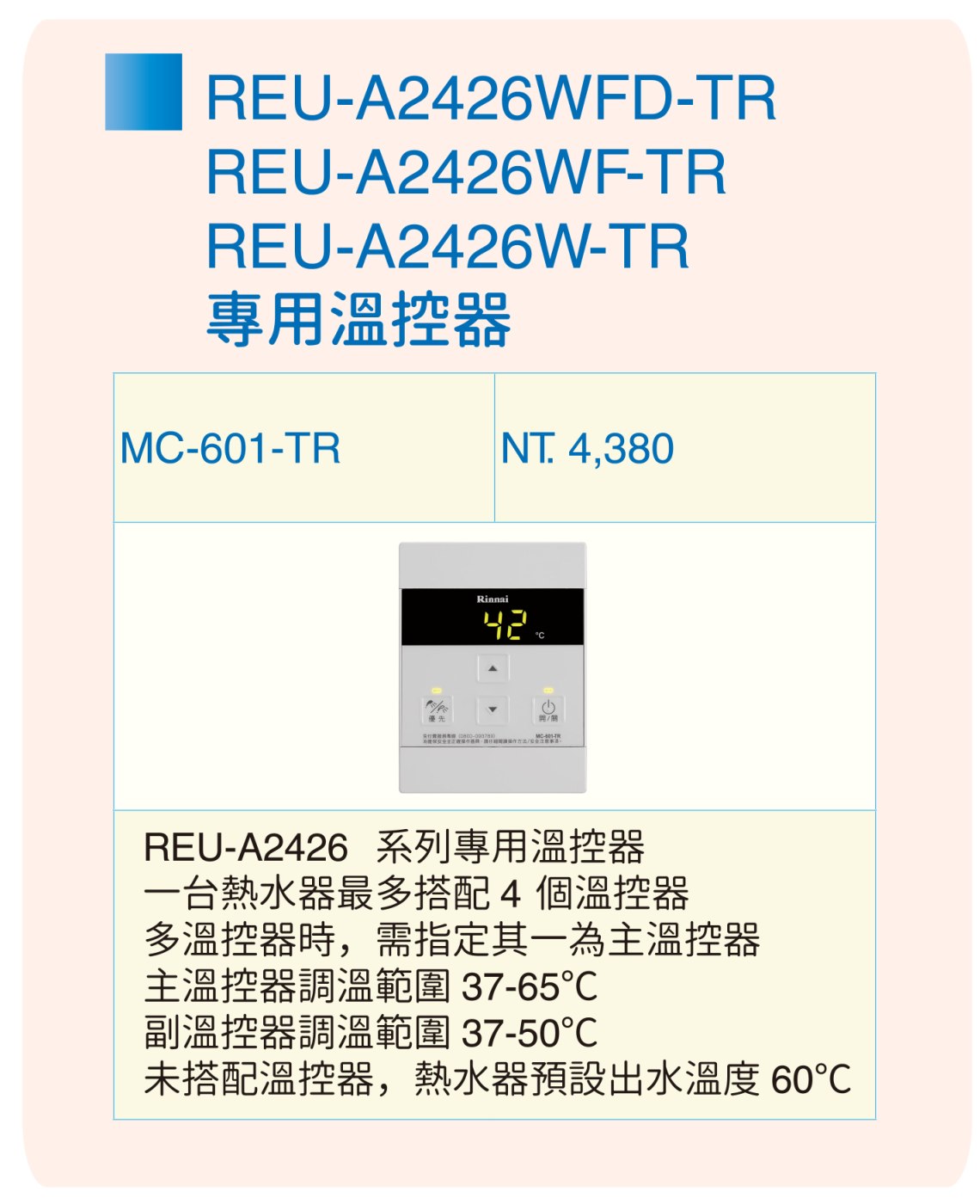 Rinnai林內-進口屋內強制排氣型24L熱水器REU-A2426WF-TR