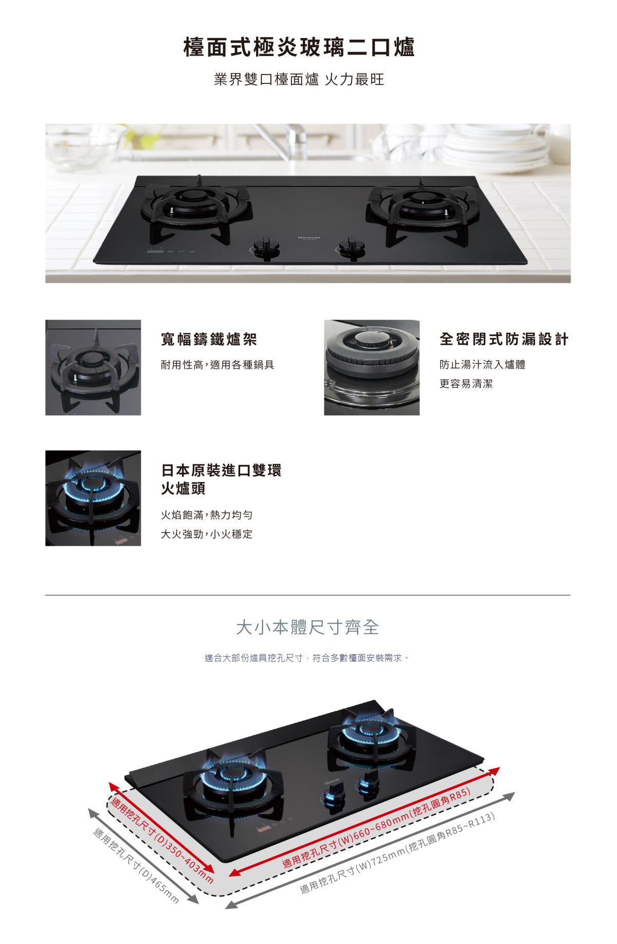 Rinnai林內-檯面式極炎玻璃二口爐RB-M2600G(B)