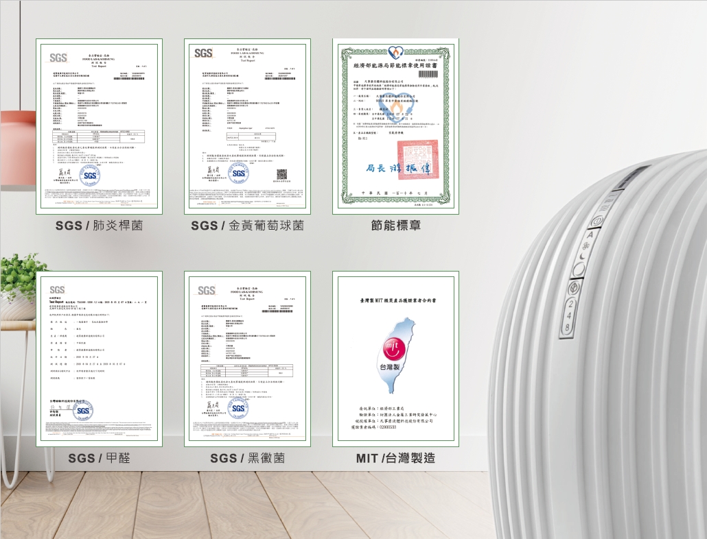 : 肺炎桿菌、金黃葡萄球菌、甲醛、黑黴菌、節能標章、MIT認證